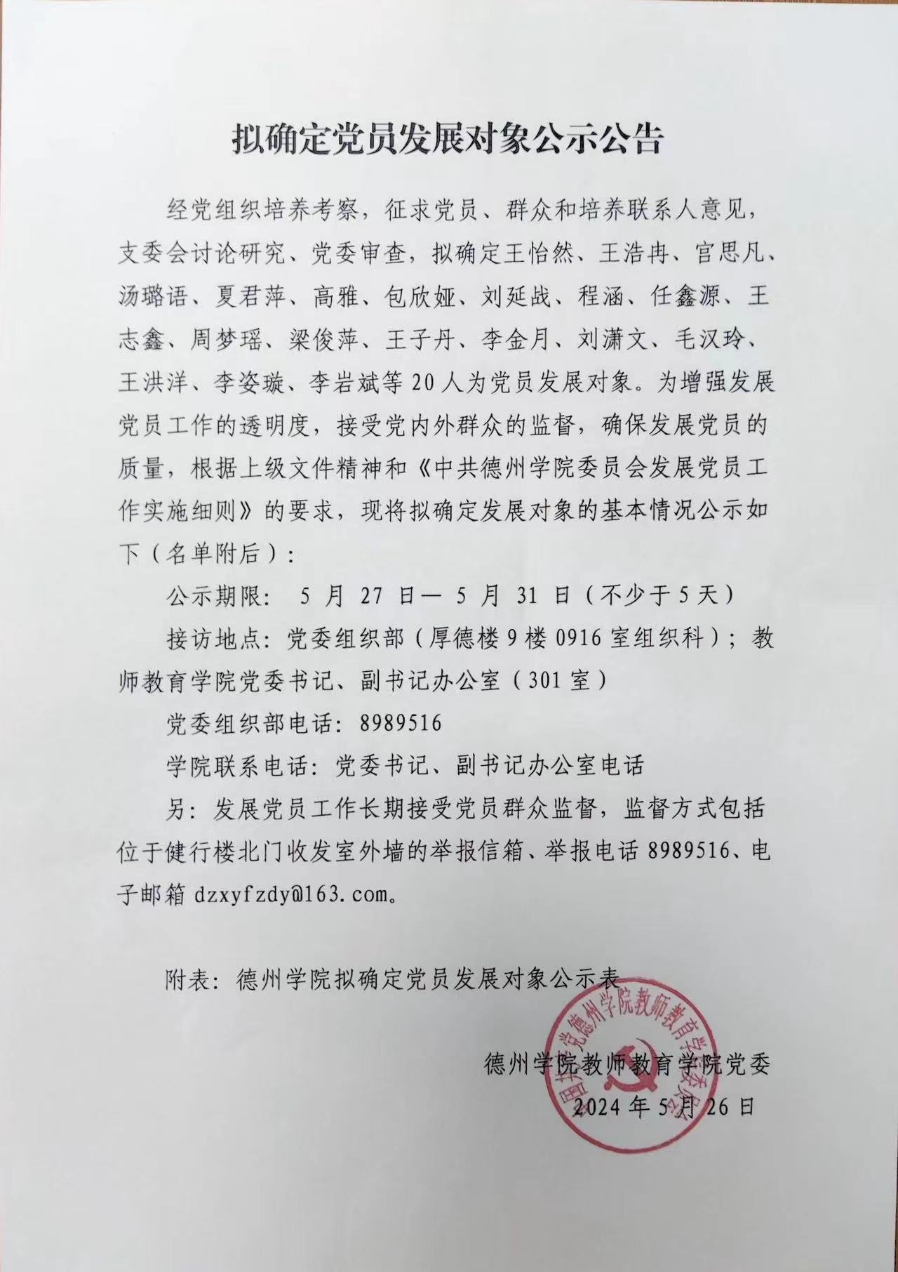 拟确定党员发展对象公示公告