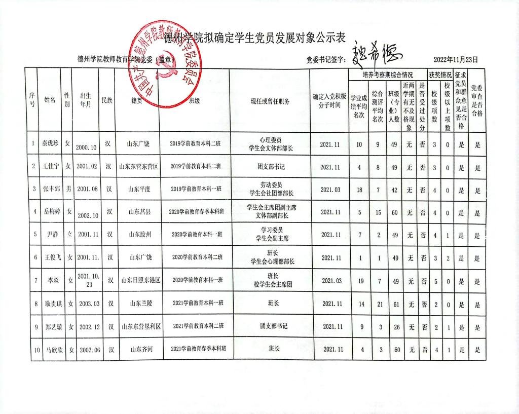 太阳成集团tyc33455拟确定党员发展对象公示公告