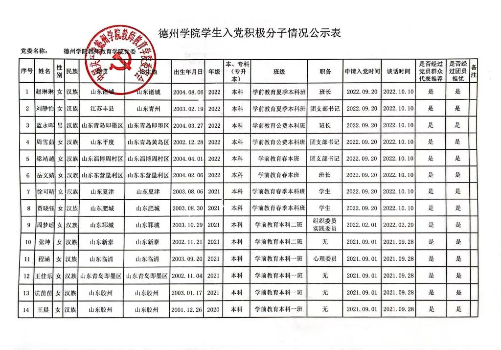 太阳成集团tyc33455入党积极分子情况公示表