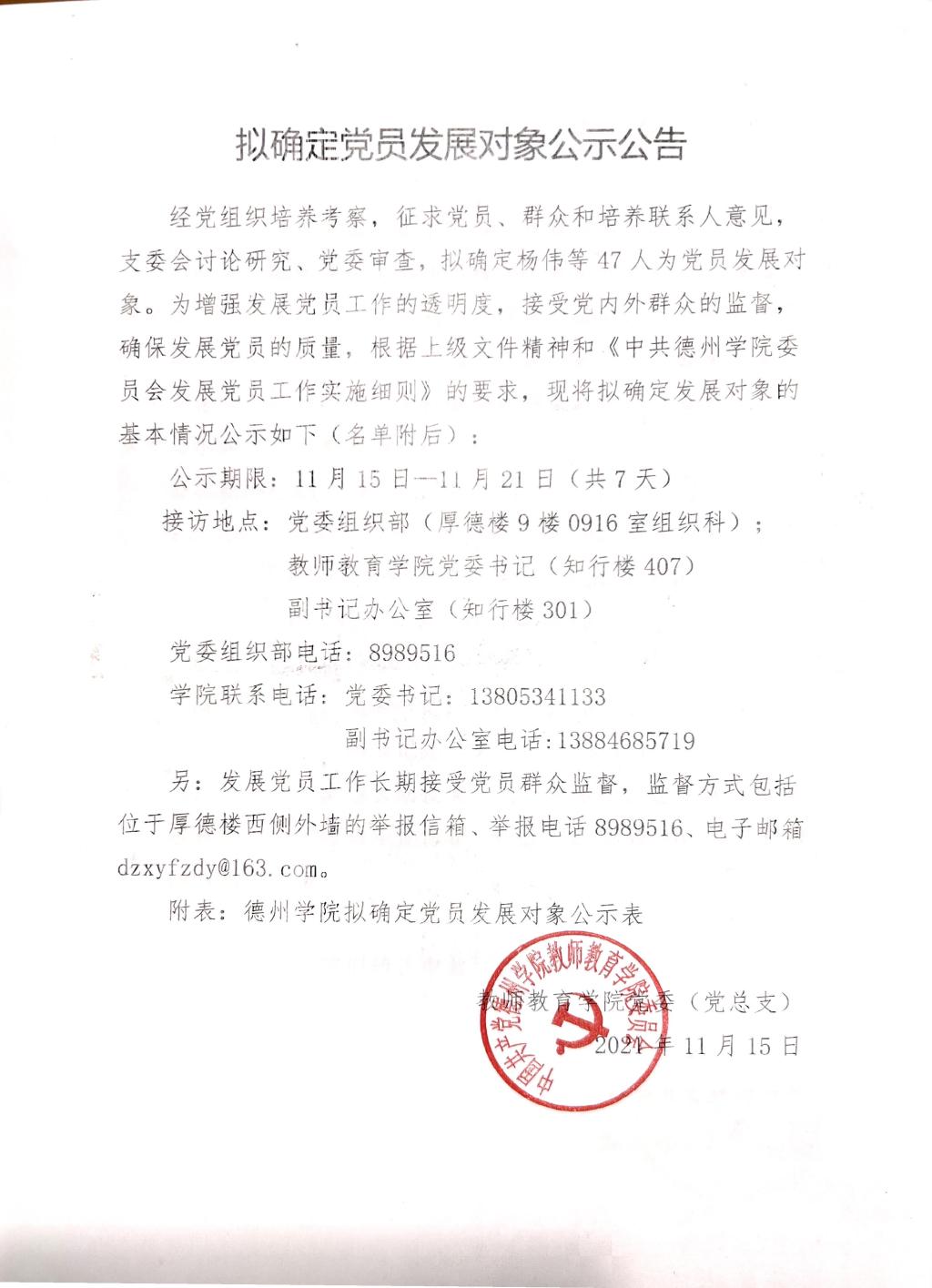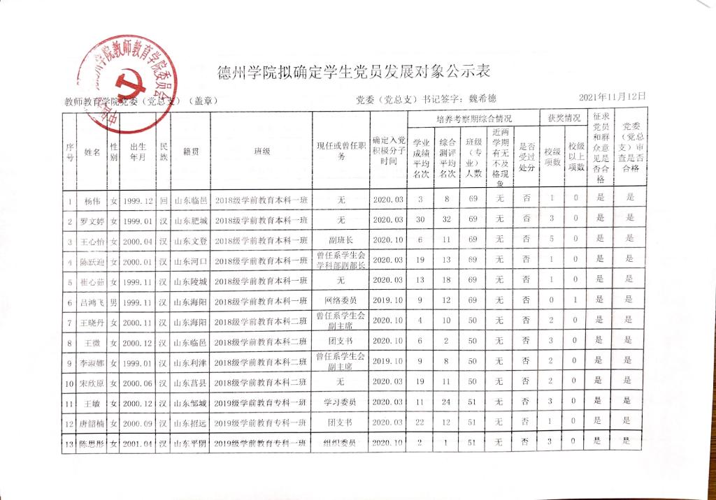 太阳成集团tyc33455拟确定党员发展对象公示公告