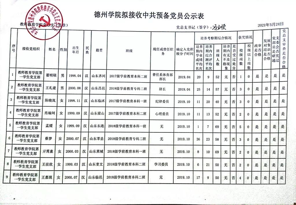 太阳成集团tyc33455cc拟接收中共预备党员第二批公示表