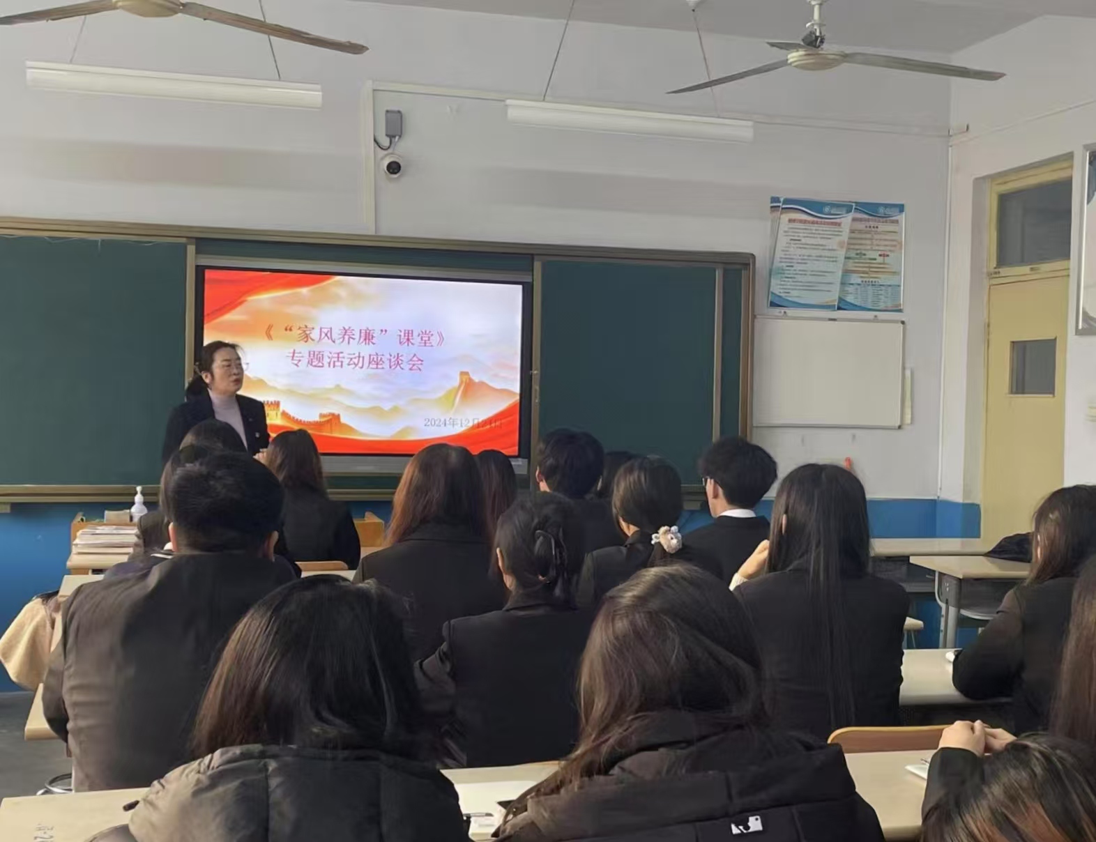 太阳成集团tyc33455三个学生党支部在2024年12月24日下午的主题党日活动中集体组织召开了《“家风养廉”课堂》专题活动座谈会,学院党委副书记闫娜娜老师列席本次活动。