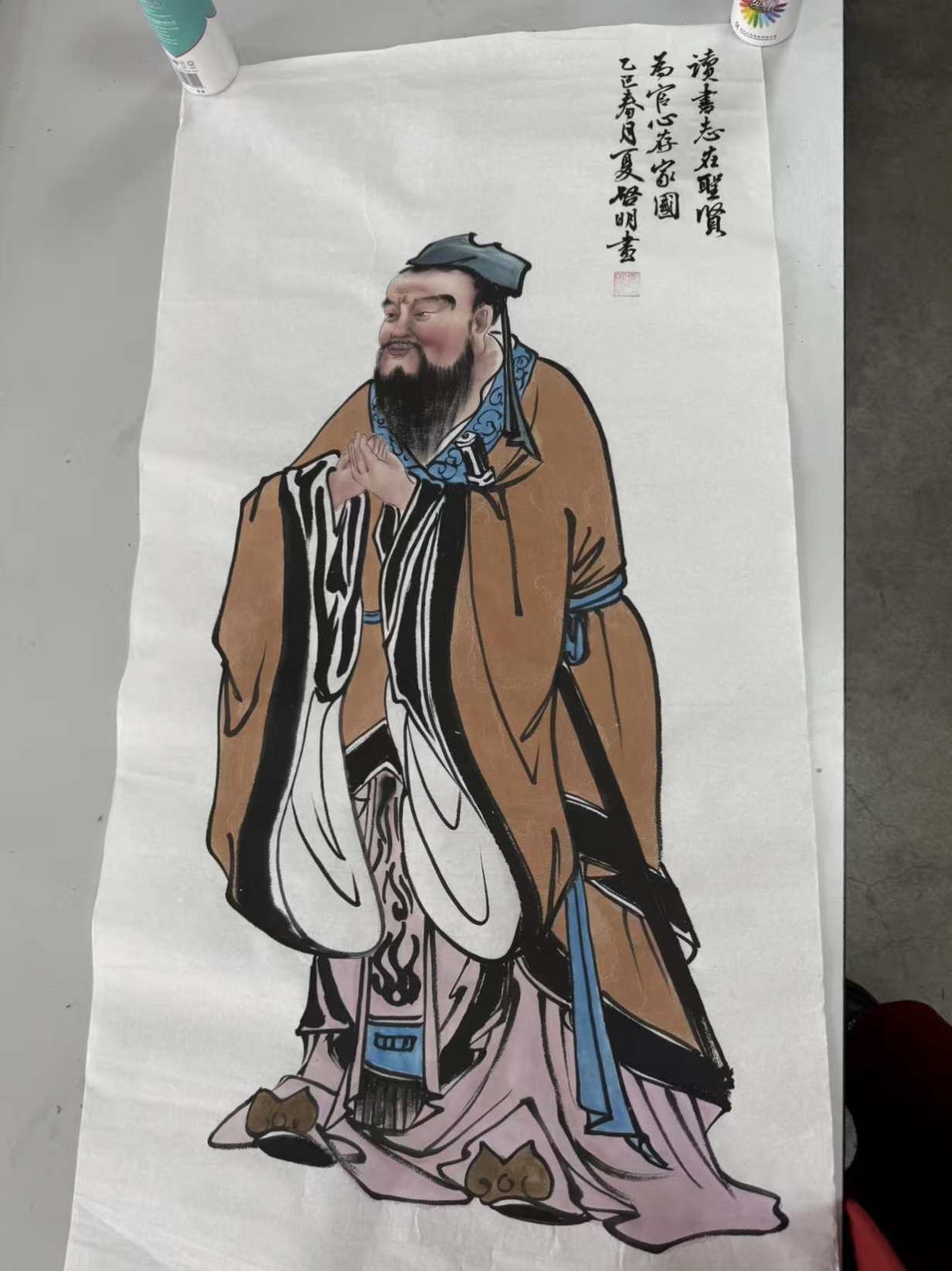本次比赛得到全院教职工的踊跃参与。活动筹备时,学院通过线上线下多渠道广泛宣传动员,召开专题学习会详细解读大赛主题与要求,确保教师明晰参赛规则。作品征集期间,共收到书法、绘画、短视频等28件形式多样的参赛作品,涵盖传统书画艺术与融合信息化手段的现代廉洁文化创作。初评环节,评审组依据主题契合度、艺术表现力等标准综合打分,遴选出12件作品进入复赛。复赛特别设置作品说明环节,入围教师现场阐释创作理念。此外,学院还邀请了专家对入围作品进行针对性指导,优化创作细节。最终,书法作品《爱莲说》与国画作品《孔子》凭借深刻立意与精湛技艺脱颖而出,《爱莲说》以遒劲笔锋彰显廉洁自律的高洁品格;《孔子》借细腻笔触诠释传统文化中的清正内涵,获推选参加第二届“青未了”杯大赛。