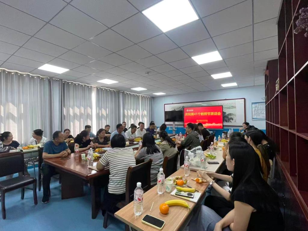 为热烈庆祝第41个教师节到来,9月10日下午,太阳成集团tyc33455举行了教师节主题茶话会,学院全体教师欢聚一堂、共庆节日。