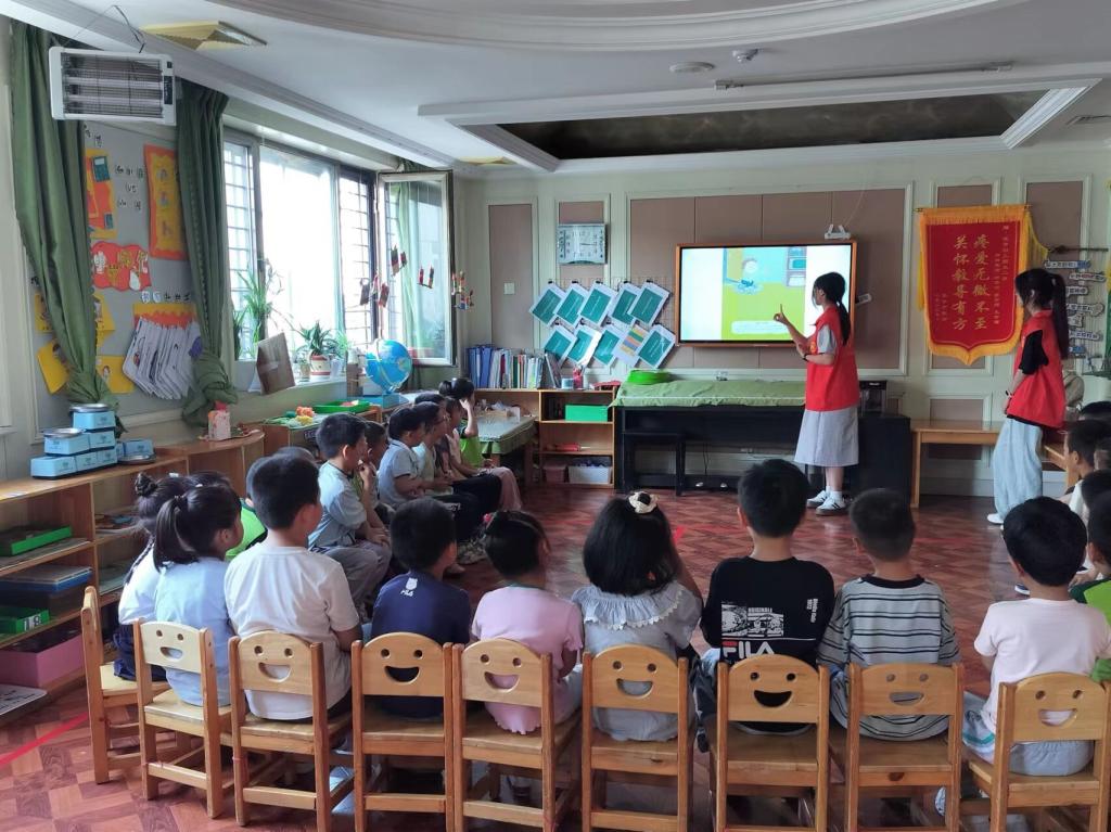 绘本作为一种独特的儿童读物,它用简洁的文字和生动的图画,向孩子们传递着丰富的知识和情感,活动开始前,志愿者们精心准备了一系列富有教育意义的绘本。在志愿者通过唱歌的形式,为孩子们营造出欢快融洽的氛围后,活动正式开始。讲解过程中,志愿者用生动的语言和孩子们互动,向孩子们介绍每一本绘本的内容和特点,并通过屏幕展示图画的方式让孩子们更直接、更形象地理解绘本故事。孩子们对绘本中的故事情节产生了浓厚的兴趣,纷纷用稚嫩的语言表达着自己对绘本的喜爱。活动结束后,志愿者们为孩子们分发小礼物,分发完毕后有序离开。