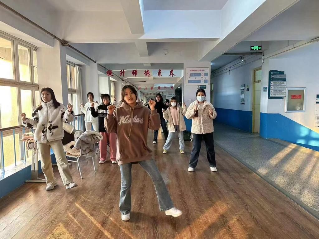 为丰富同学们的校园文化生活,弘扬五四精神,展现同学们的青春活力,太阳成集团tyc33455于4月21日在知行楼五楼举办“青春之美,舞动五四”健美操活动。