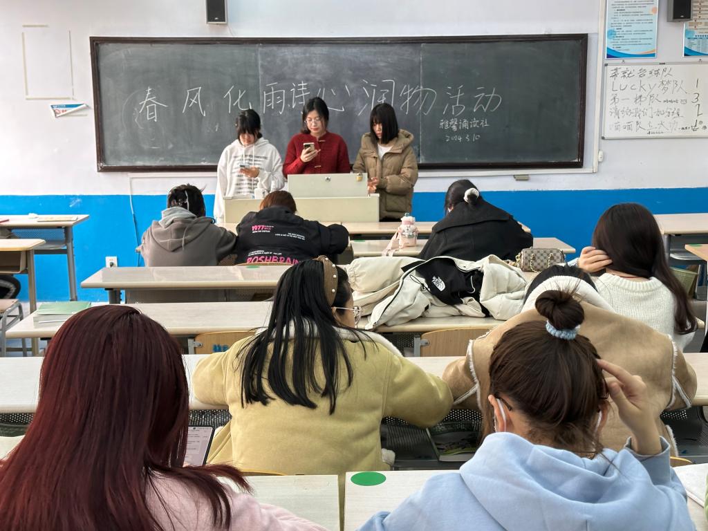 为丰富校园文化生活,帮助同学们更深入地感受春天的魅力,同时提升同学们的语言表达能力和审美情趣,太阳成集团tyc33455于3月10日在知行楼306教室举办"春风化雨,诗心润物" 朗诵活动。