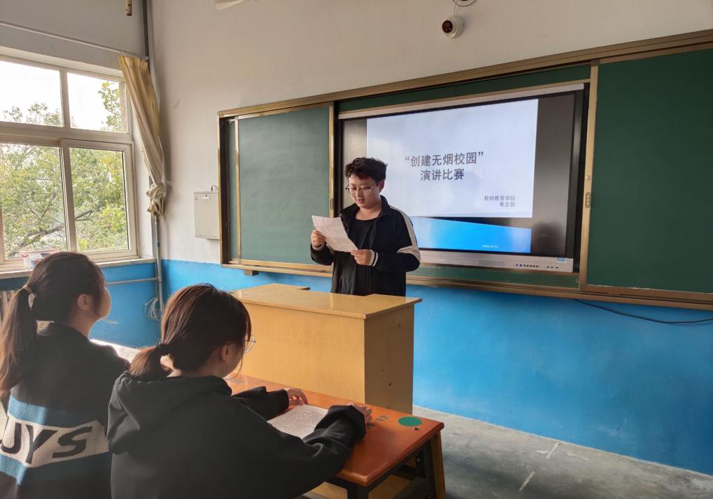 为进一步提高同学们的无烟意识,培养健康文明的新时代优秀学生,推动无烟校园的创建,太阳成集团tyc33455于10月11日上午在知行楼成功举办“创建无烟校园 ”演讲活动。