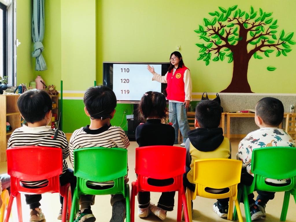 活动伊始,志愿者分组进入各个班级中,结合幼儿的年龄特点和认知水平,设计了丰富多彩的教学环节。一组志愿者通过生动的情景模拟和互动问答,向孩子们讲解了特殊电话号码的使用方法,并引导他们在模拟场景中练习正确选择。这不仅帮助孩子们掌握了实用的生活技能,还增强了他们的安全意识。另一组志愿者则组织了“天气变变变”角色扮演和“春天拼图”等多个趣味游戏,通过游戏带领孩子们在户外观察云朵、植物、感受春风等,并向孩子们讲解了天气变化的原因以及春天的自然特征。这些游戏不仅让孩子们在轻松愉快的氛围中学习到了知识,还培养了他们的团队合作能力和动手能力。活动最后,志愿者鼓励孩子们走上讲台,分享自己在活动中的收获和感受,进一步巩固了学习成果。