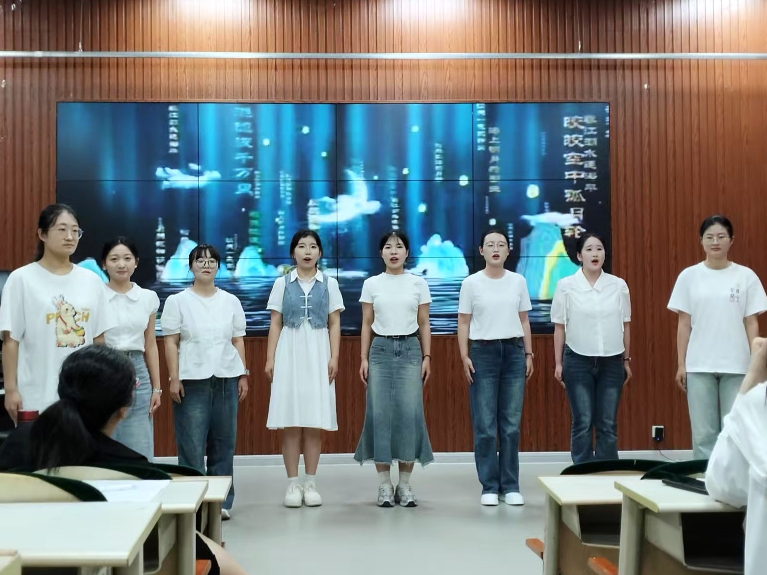 本次展演精心设置了琴法、声乐、舞蹈、幼儿歌曲伴奏、音乐基础、国学经典诵读以及心理剧等板块,全方位呈现同学们的专业技能与艺术修养。活动现场,表演者以娴熟的演奏技巧和细腻的情感表达,将经典曲目演绎得淋漓尽致;声乐环节中,合唱与独唱交相辉映,既有充满童趣的活泼演绎,又有深情细腻的抒情表达;舞蹈表演融合多元艺术风格,既有民族风情的特色舞蹈,又有古典韵味的优雅舞姿,充分展现了同学们的艺术表现力。在专业技能展示环节,幼儿歌曲伴奏将音乐理论与教学实践有机结合,展现了扎实的伴奏功底;音乐基础展示通过多声部合唱等形式,体现了同学们良好的音乐素养;国学经典诵读则以富有感染力的朗诵让传统文化焕发时代光彩。特别设置的心理剧表演通过生动舞台呈现,深入探讨学生成长中的心理议题,展现了同学们运用心理学知识解决实际问题的能力。展演最后,评委老师肯定了同学们的专业表现,并鼓励大家以此次活动为契机,持续打磨自身技能、巩固实践经验。