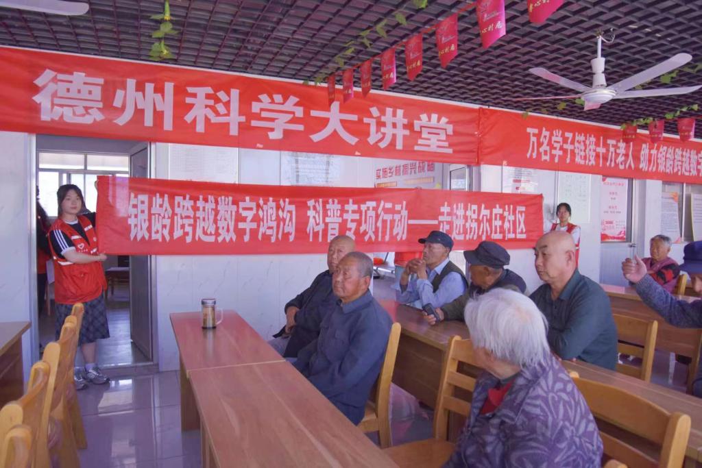活动现场,德州市科学技术协会和拐尔庄村书记对志愿者队伍进行欢迎,并详细介绍了“万名学子链接十万老人,助力银龄跨越数字鸿沟”科普专项行动的目的和意义。活动伊始,志愿者通过问卷调查的形式与老人们进行互动,了解老人使用手机的具体情况。过程中,志愿者通过PPT和短视频,结合老年人的实际需求,现场讲解智能手机在日常就医的应用知识。在志愿者的热心帮助下,老人们一边学习一边动手操作,逐步掌握了网上挂号预约的流程,切实感受到信息时代带来的科技感和幸福感。随后,志愿者还通过互动和实例分析,让老人们更直观地了解网络诈骗的常见手法和应对策略,使其能够识别和规避网络风险,有效加强了老年人的防诈反诈意识。