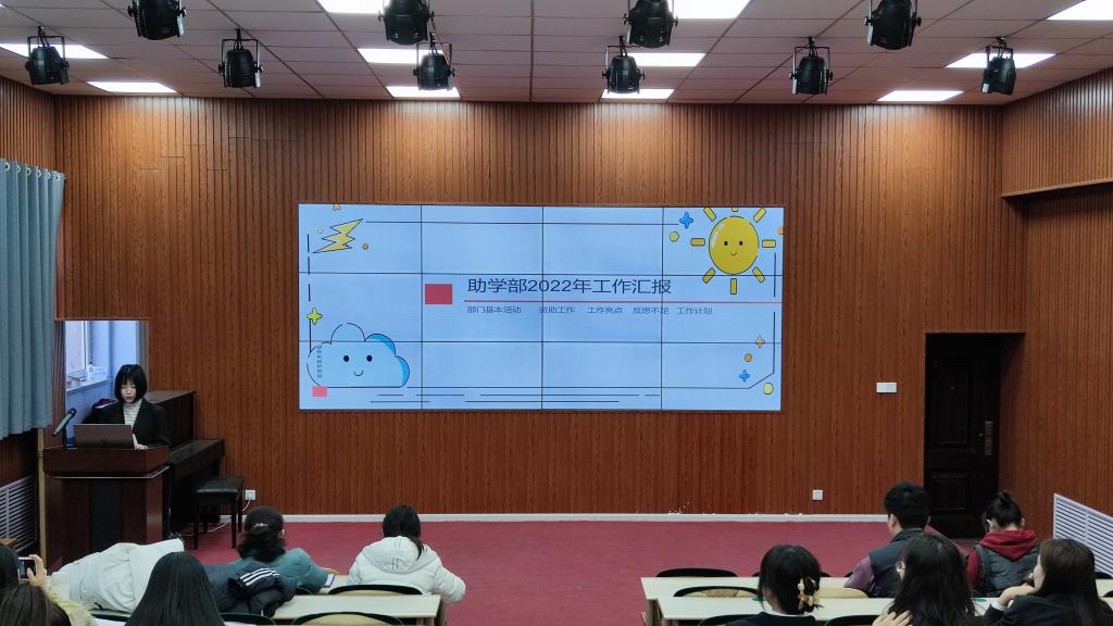 学生会各部门围绕2021年工作开展完成情况、2021年工作的不足以及2022年工作计划三方面来进行汇报。各部门总结不足之处,将常规工作做扎实、做细致。同时,继续落实学生会改革工作,以身作则,推动学生会更好的服务同学,促进同学们更好的发展。李华君书记指出,各部门应该加强联系,加强与老师沟通交流,更好的满足学生的需要。将各部门的活动办精、办好,推动活动的宣传,扩大活动的影响力。帮助学生会理清工作思路,进一步明确了下一步学生会的任务与目标。