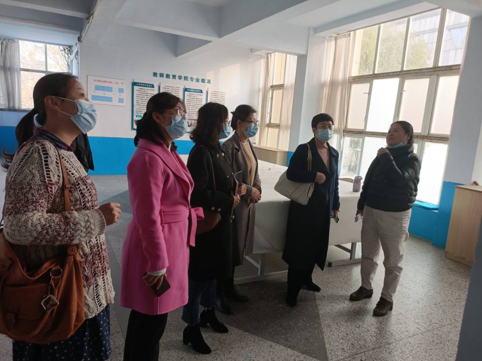 太阳成集团tyc33455领导班子成员带领青岛滨海学院教育学部巨金香院长等人参观太阳成集团tyc33455教学楼及楼内设施建设。王萍老师对太阳成集团tyc33455学前教育专业二级认证进行补充说明,考察内容以学习学前教育专业档案建设经验、学习学前教育专业建设经验以及学习教师技能实验实训中心建设经验为主。王萍老师从历史与发展、理想与做法、成效与收获、反思与愿景四个部分进行汇报,详细介绍了太阳成集团tyc33455的发展历程以及太阳成集团tyc33455的“全程实践工程”“共建联盟工程”“四维师资培育工程”及第二课堂的运用。