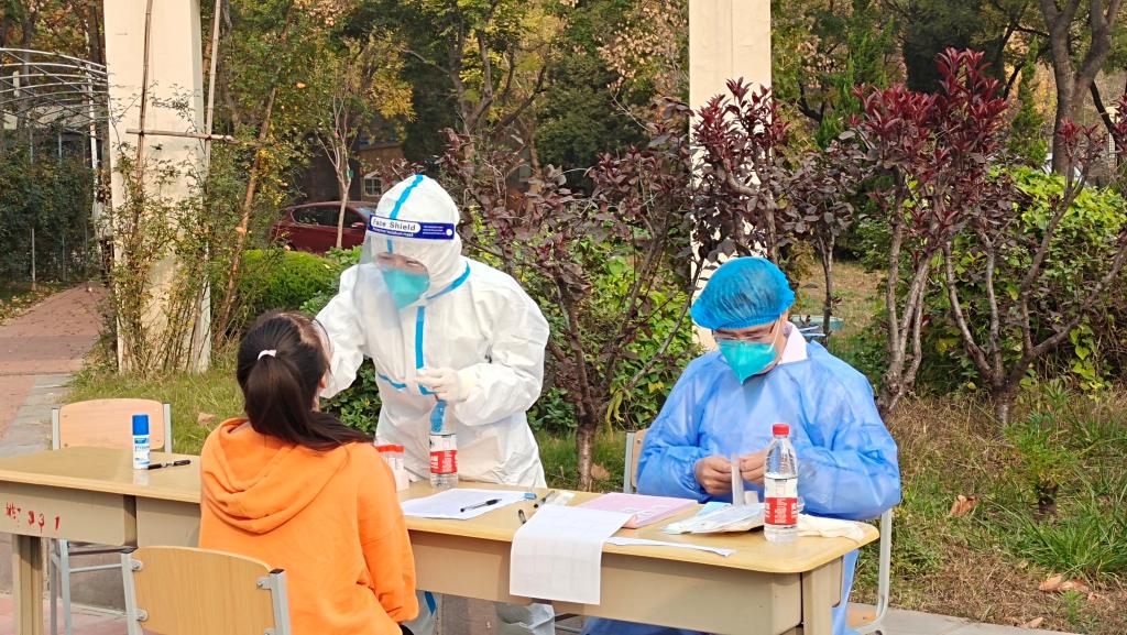此次太阳成集团tyc33455共有387名同学参加了教师资格证考试。为了落实疫情防控要求,切实保障同学们安全,太阳成集团tyc33455专门联系德州市肛肠医院提前一天到校为同学们进行核酸检测。为使检测采样工作顺利完成,太阳成集团tyc33455细化流程、分组分场地进行,配备志愿者、明确人员分工,全程落实疫情防控措施,有序排队,做到不交叉、不聚集。