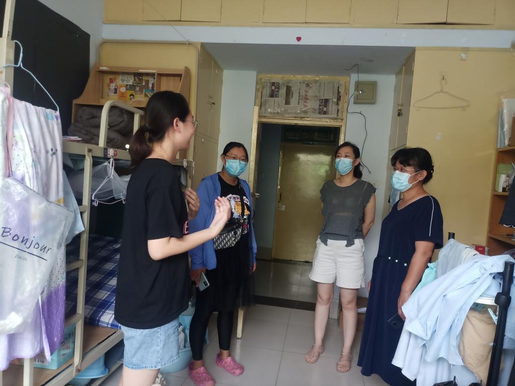为深入了解我院暑期留校学生在学习、生活、防疫等方面的情况,8月10日我院团总支书记、辅导员在党委副书记李华君的带领下,深入学生宿舍,走访看望我院暑期留校学生。