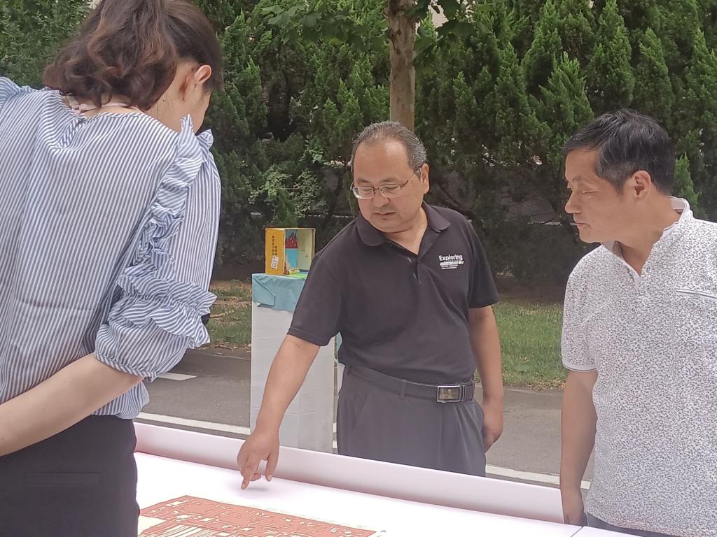 活动前期,负责人制作电子邀请函和纸质邀请函并分发到各系,面向我校全体师生发出诚挚邀请。作品展览负责人筛选历次活动中优秀的剪纸、书画、手工作品,并将其进行归纳整理,活动场地布置好后,将展览作品摆出。随后,艺术展正式开始。来观看展览的有我校各级各院学生和教师,他们仔细观看陈列在展览板上的作品,相互讨论,有的学生还在作品便签上写下对祝党生日快乐和自己的小小感悟。观看完展览后还可以参加党史知识问答、签名墙打卡活动,现场活动热闹,大家各饱眼福。活动最后,负责人党史问答积分,予以印章奖励,大家在打卡墙前合影留念,喊出对党的祝福。