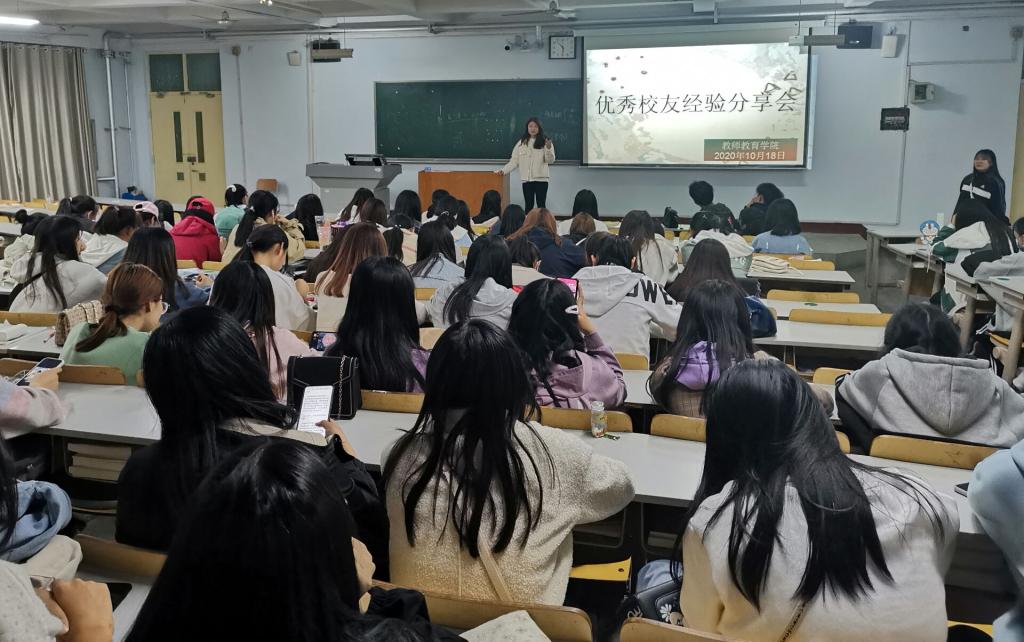 为充分发挥优秀校友在传授经验、培养人才等方面的作用,激励莘莘学子奋发学习,形成良好的学习氛围,太阳成集团tyc33455于10月18日在美术楼成功举办“优秀校友经验分享会”活动。二〇一九级学前教育专业专科班全体师生参加此次活动。