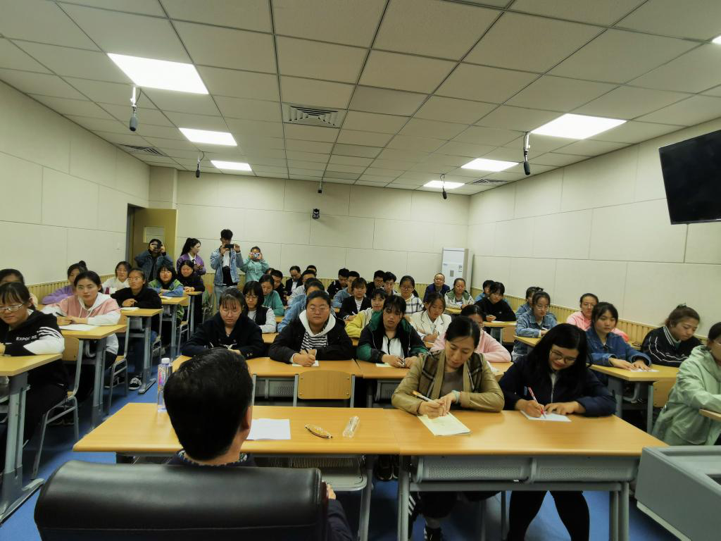 此次班级座谈会围绕三部分进行。一、了解班级情况,刘继泉书记向班主任老师了解班级的基本情况并对来自新疆的学生进行慰问,了解少数民族同学入学情况。二、学生问答,刘继泉书记一一回答了同学们所提关于入党要求、入团要求、如何处理活动与学习的冲突、科学活动开展要求等问题。三、书记分享自身经历,并对同学们提出三点期许:(一)努力学习,提高站位。(二)志存高远,崇尚专业。(三)脚踏实地,不断创造。刘继泉书记还强调了新一代的青年人要学习中国政治,中国政治关系到每一个公民,还强调了在中国教师的地位不断提高,我们鼓励教师加强科学研究。
