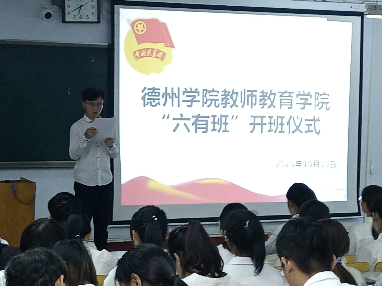 为加强校园文化建设,提高团干部素质,增强团总支对各团支部的管理,太阳成集团tyc33455于2020年10月15日在美术楼教室举办“六有班”开班仪式。