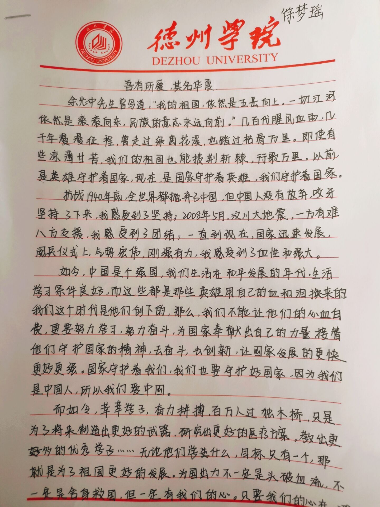此次征文活动的成功举办,弘扬了爱国主义精神,有利于帮助同学们树立正确的人生观和价值观,成为一名优秀的社会主义建设者和接班人。坚定了同学们忠于祖国,忠于人民的理想信念和跟党走的决心,为同学们提供了一个展现自我的平台,有利于文明校园的建设。