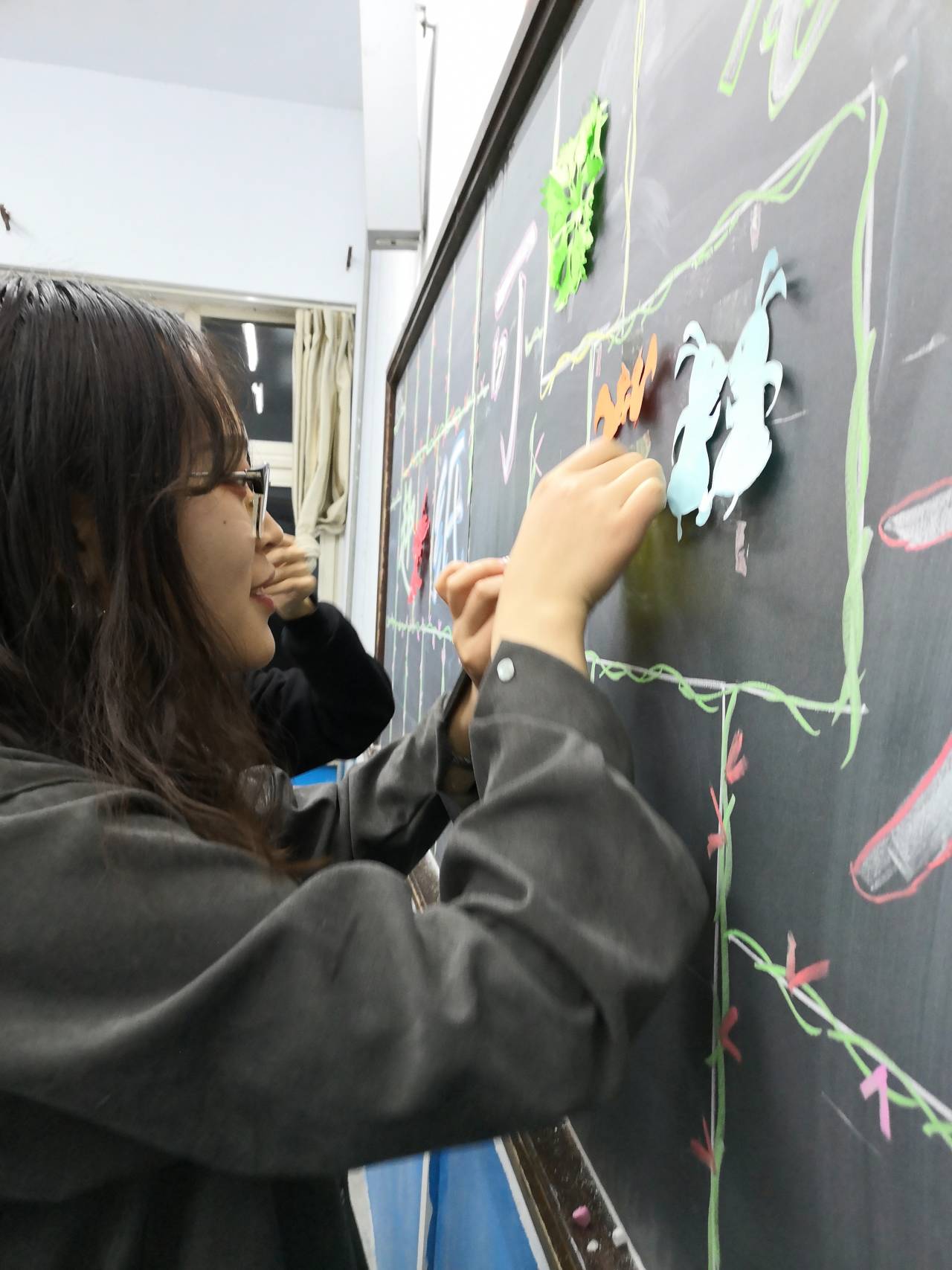 活动伊始,主持人介绍了本次活动的流程及注意事项。随后,同学们挑选了自己需要的卡纸和工具。活动过程中,同学们认真剪切着手中的卡纸,有的剪雪花、有的剪喜字、还有的剪小动物,并且创意出了立体剪纸等一些新型剪纸类型。活动最后,同学们将自己的剪纸贴到黑板上的投票区,主持人根据各位同学所获取的票数进行排名。
