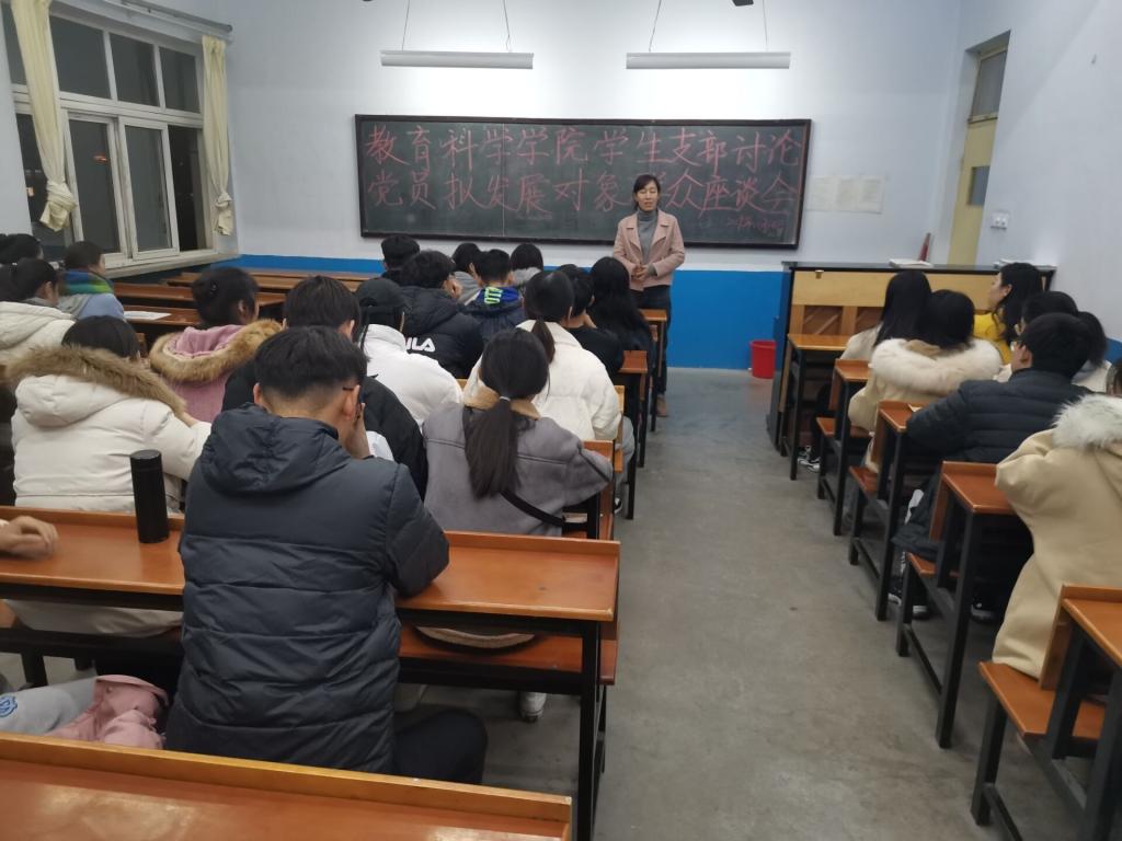为了把控党员发展的质量,全面深入了解拟发展对象的思想状况、学习状况和生活状况,推选更有群众基础的优秀学生加入党组织,太阳成集团tyc33455cc教育科学学院于2019年11月19日在知行楼503教室成功召开学生支部讨论党员拟发展对象群众座谈会。