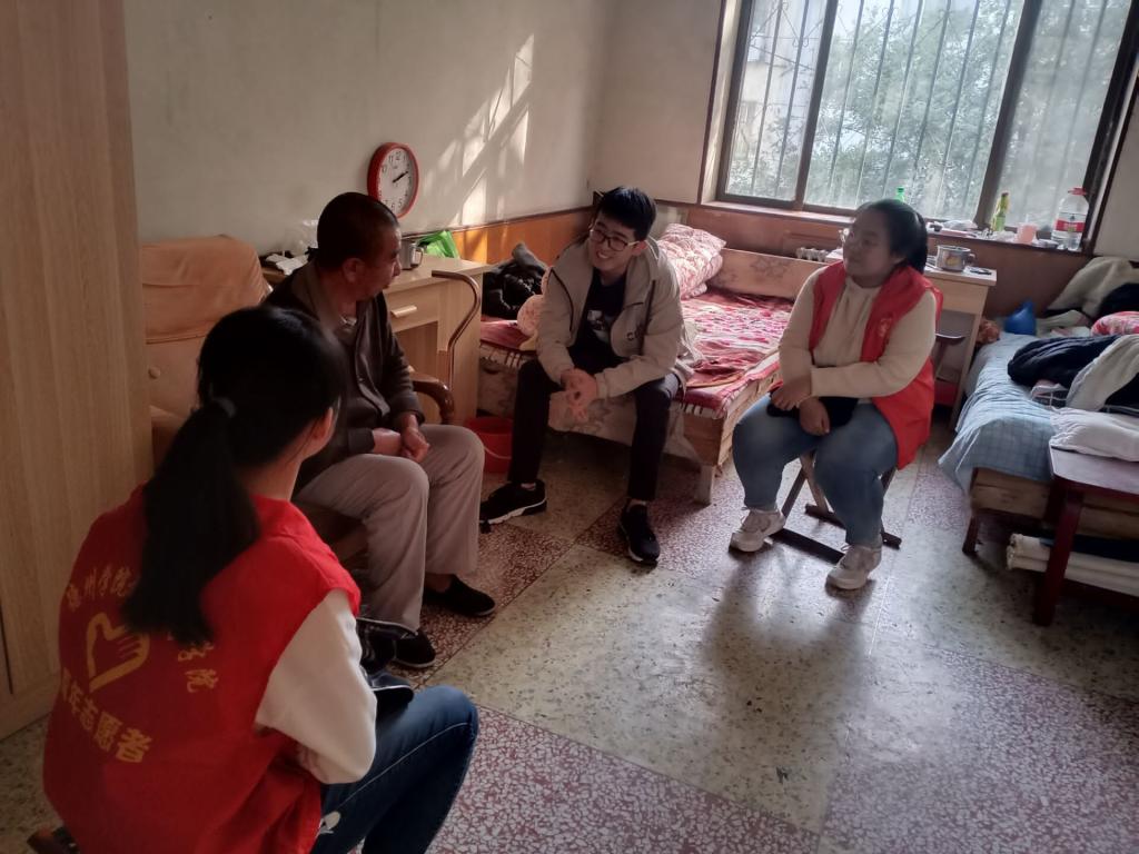 活动伊始,志愿者们与敬老院管理人员进行沟通交流,了解老人们的生活状况以及与活动相关的注意事项。随后,志愿者们开始探访老人,并耐心陪老人聊天、认真聆听退伍老人讲过去的革命故事,感悟老人所经历的峥嵘岁月。最后志愿者们与老人拍照留念,并向敬老院的管理人员咨询此次志愿服务的不足之处。