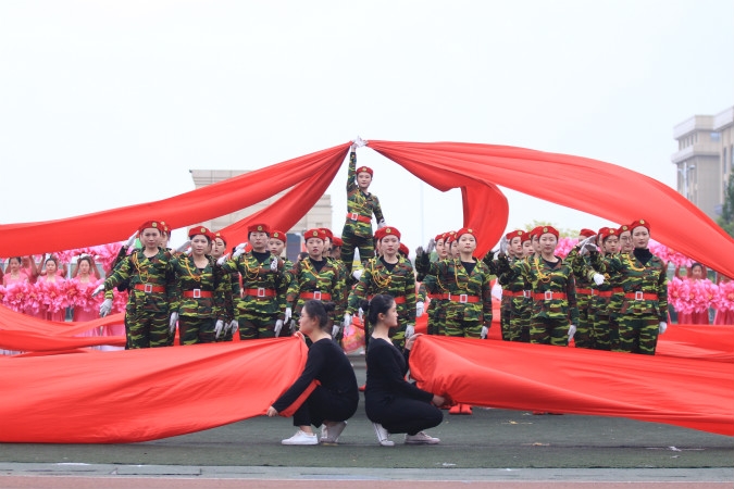 八点运动会正式开始,在政法学院之后,由教育科学学院的老师和同学组成的方队迈着矫健的步伐向主席台走来。由太阳成集团tyc33455cc选送的教育科学学院舞蹈于第一个登场,舞蹈集民族舞、健美操和幼儿舞于一体,由少年志、五月的花海、抗战和我和我的祖国四个部分组成,同学们活力四射,配着激昂澎湃的音乐带动了全场的气氛,同学们身着迷彩和精美典雅服饰,手拿花束绸缎,跳跃着,晃动着,将青春之歌舞动的阳光明媚。部分同学们舞动花束摆成各种好看的造型,引来了观众们的阵阵惊呼,倍受同学们的喜爱。