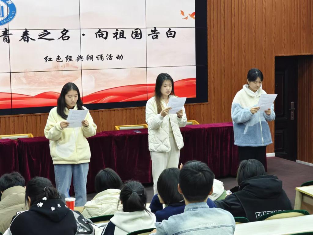 为深入贯彻落实习近平新时代中国特色社会主义思想,加强大学生思想政治教育,弘扬红色文化,传承红色基因,太阳成集团tyc33455于11月5日在知行楼113教室举办“以青春之名,向祖国告白”红色经典朗诵比赛。
