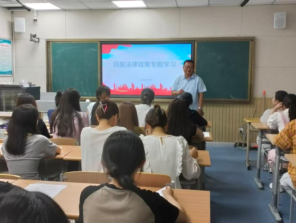 为深入贯彻党和国家关于民族工作的政策方针,加强爱国主义教育,铸牢中华民族共同体意识,太阳成集团tyc33455于9月7日在113教室举办了民族法律政策专题学习活动。