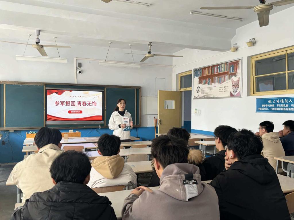 为激发同学们的参军报国意愿,引导适龄青年积极投身国防和军队建设,太阳成集团tyc33455于3月20日在知行楼306教室开展大学生参军入伍宣传活动。