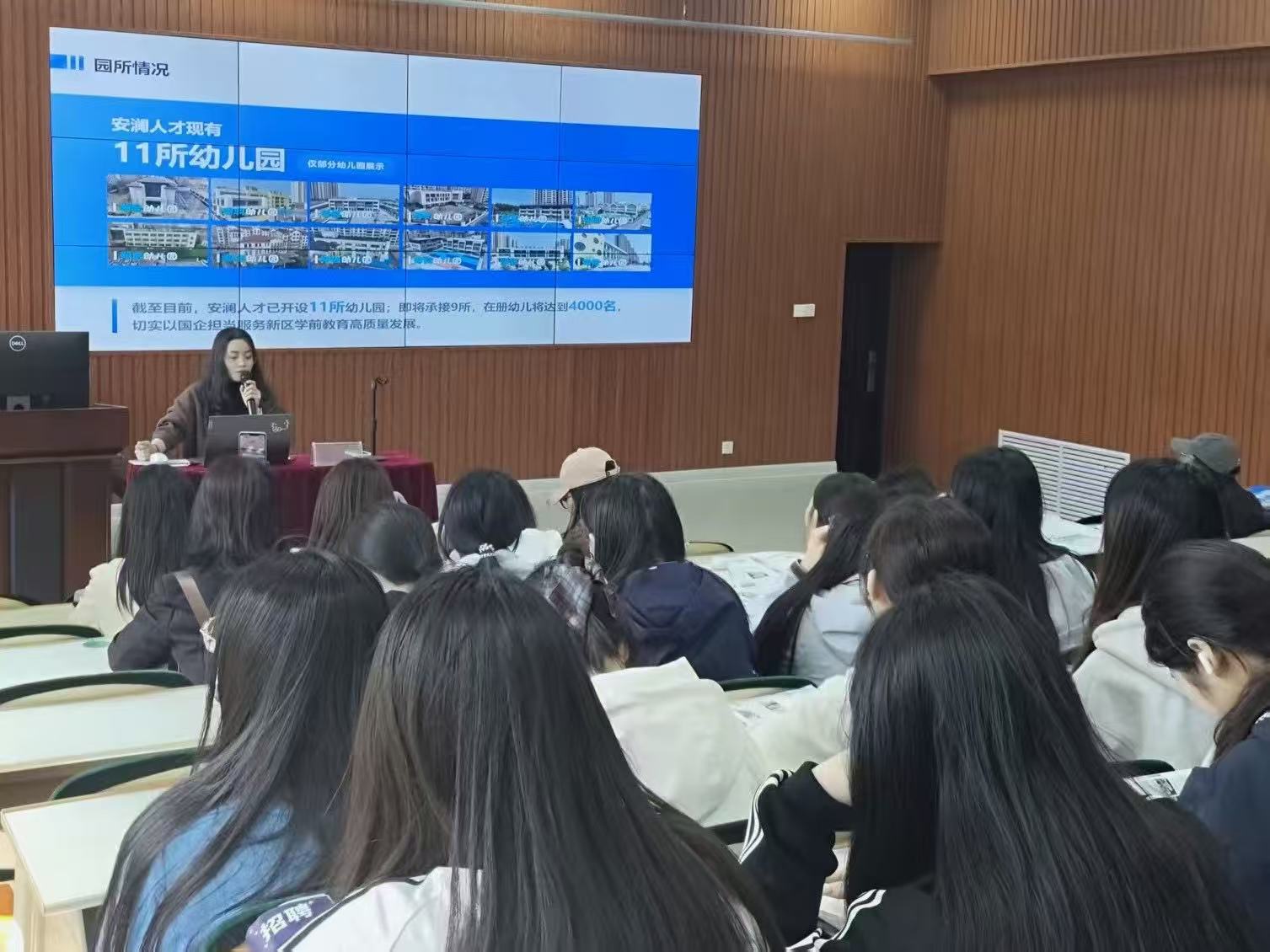 为搭建毕业生与用人单位精准对接桥梁,拓宽学前教育、小学教育专业毕业生就业渠道,4月12日,我院成功举办2026届毕业生专场宣讲招聘会。本次招聘会邀请5家优质用人单位参会,吸引100余名毕业生到场咨询应聘,现场氛围热烈有序。