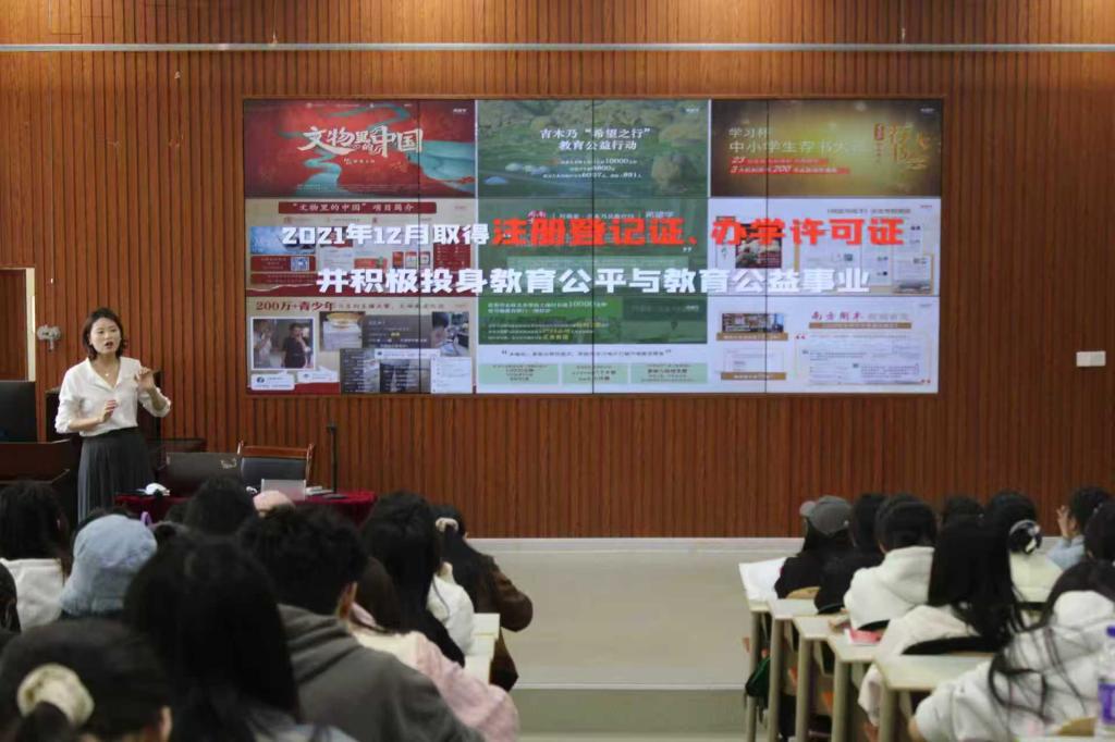 宣讲环节中,各用人单位代表依次上台,通过PPT展示、现场讲解等方式,详细介绍企业概况、岗位职责、薪资待遇及招聘要求。山东安澜人才服务有限公司重点推介澜景幼儿园相关岗位,解读国企办园优势;北京希望在线介绍小学IP主讲培训生岗位及培训体系;其余三家企业也结合自身特色,介绍相关岗位需求与发展前景,让毕业生全面了解招聘细节。