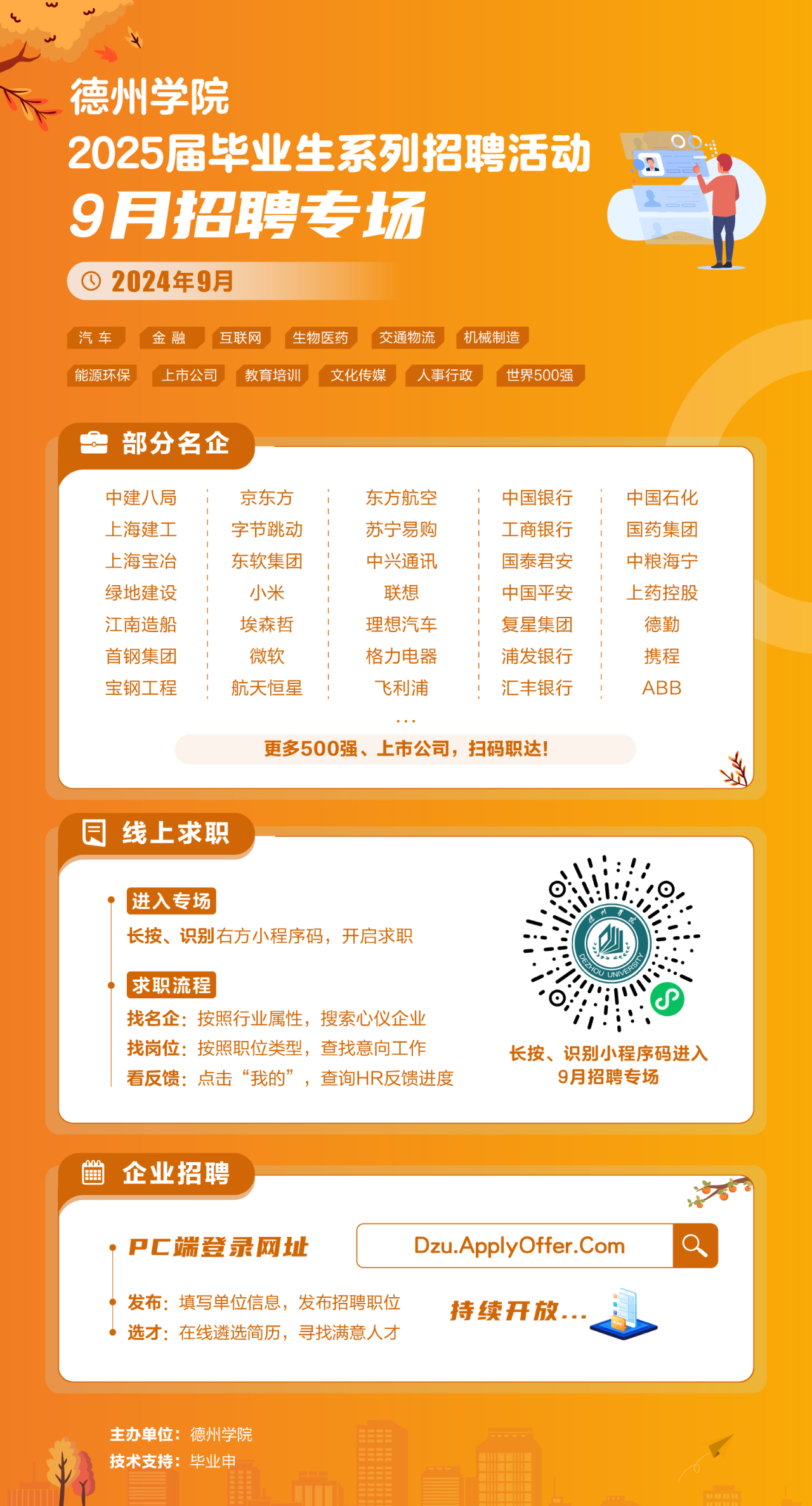 9月招聘专场 | 太阳成集团tyc33455cc2025届毕业生系列招聘活动