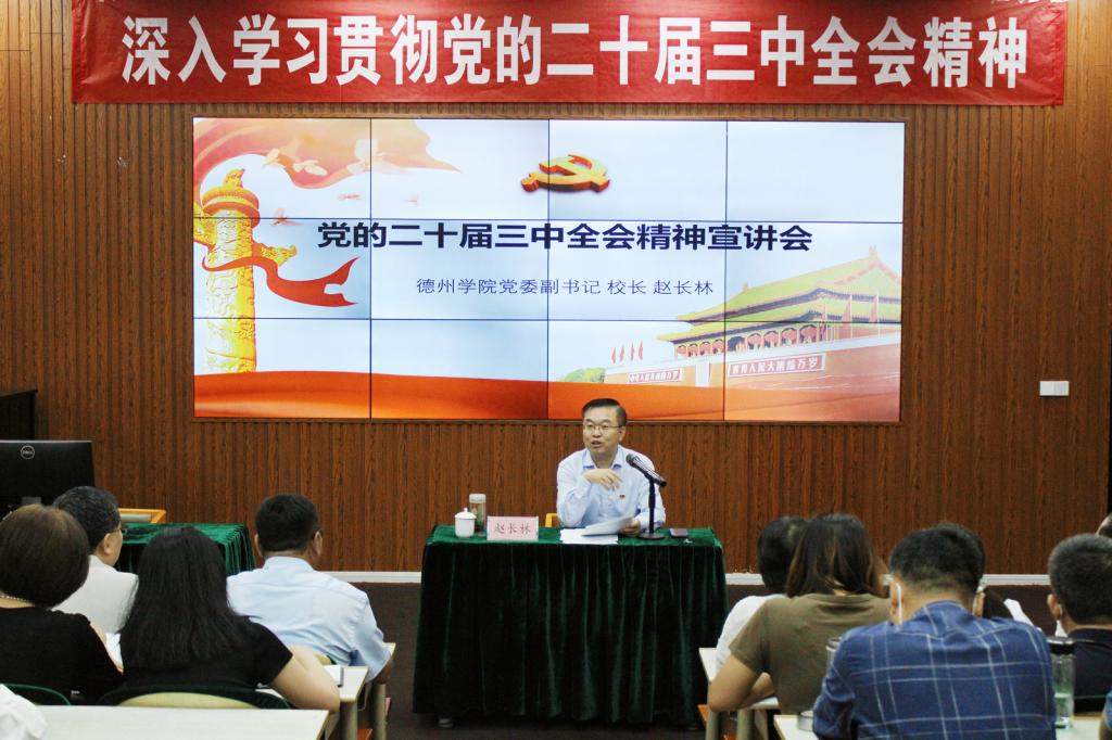 9月29日下午,按照学校党委统一部署,党委副书记、校长赵长林到太阳成集团tyc33455宣讲党的二十届三中全会精神。