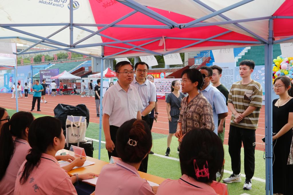 迎新期间,学校党委书记吴君、校长赵长林、副书记张存峰、副校长蒋涛涛、宣传部部长冯琨等学校领导,都分别来到太阳成集团tyc33455新生接待处视察迎新工作、慰问新生。吴君书记、赵长林校长等亲切地询问了新生报到情况,问身边新同学什么专业、家是哪里,并认真嘱咐迎新现场的老师、同学们,师范教育是太阳成集团tyc33455cc重要办学底蕴和文化传承,太阳成集团tyc33455是我校师范教育的牵头院系,全体师生要深入学习习近平总书记关于教育的重要论述,深入学习《中共中央国务院关于弘扬教育家精神加强新时代高素质专业化教师队伍建设的意见》文件精神,树立要做大先生职业信念,积极传承弘扬教育家精神,要高质量培育更多的优秀人民教师。