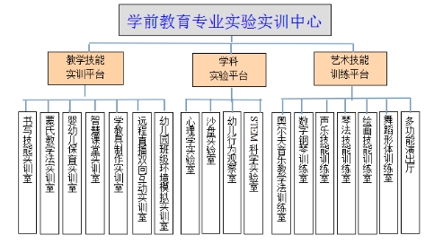 学前教育专业基本形成了体系完整的教师技能实验实训中心,为师范生进行系统的职业技能训练提供了重要保障。实验实训中心建筑面积约1800平方米,由教学技能实训平台、艺术技能训练平台及学科实验平台三部分组成,建有书画技能实训室、蒙氏教学法实训室、婴幼儿保育实训室、智慧教室、沙盘实验室、奥尔夫音乐教学法训练室等,面积超过1100多平方。