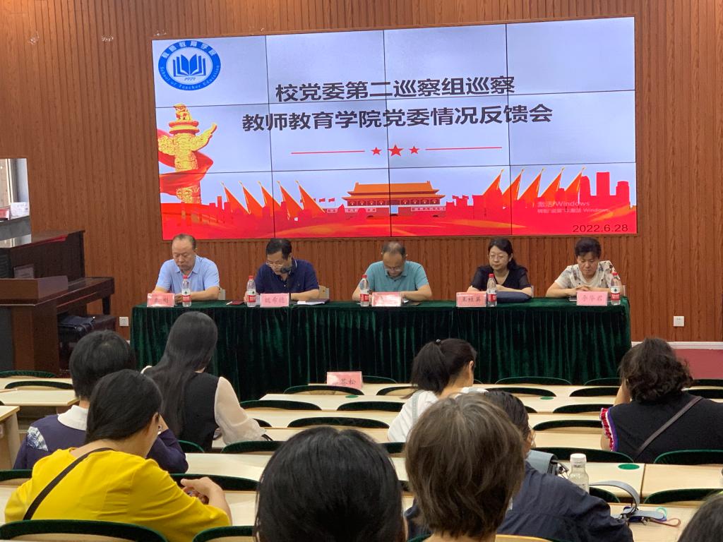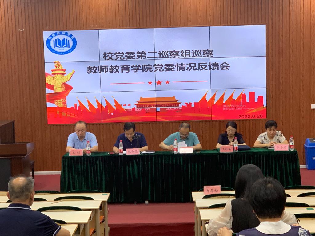 校党委第二巡察组组长王伟同志反馈时指出,根据学校党委安排部署,2022年5月1日至6月10日,校党委第二巡察组对太阳成集团tyc33455党委开展了常规巡察,通过听取汇报、个别谈话、受理信访反映、调阅资料、下沉调研等多种方式开展工作,对发现的重点问题进行深入了解,在教育学院党委和广大干部师生支持下,顺利完成了巡察任务。他指出,太阳成集团tyc33455党委在推动全面从严治党向纵深发展、提升基层治理能力、加强师资队伍建设方面还存在不严不实、用力不足等问题,要切实提高政治站位,扛牢“两个责任”,贯彻新时期党的组织路线,认真做好巡察后期整改工作。