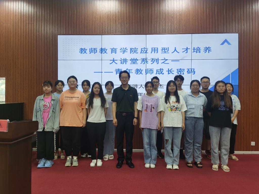 为加强对应用型人才的培养,更好契合学校教学工作会议“产教融合,提质创新,加快推进高水平应用型大学建设”的主题,6月11日,在知行楼113教室,学院邀请德开小学孟杰校长为2020级小学教育专业的学生作“青年教师成长密码”的主题讲座。孟杰校长以一路走来的亲身经历,以“用心、坚持、机遇”为关键词,娓娓道来青年教师的成长故事,从一名“齐鲁名校长”的视角,为在坐的学生提出了忠告与建议,为未来的准小学教师,明确了成长目标,建构了成长路径,提供了可操可行的方法。讲座中深入教学实际、追求卓越道路上的各种细节展示,让学生深感震撼。孟杰校长并对本学期我院在德开小学支教的18名学生给予最充分的肯定和赞赏,为学弟和学妹们提供了真实的榜样。