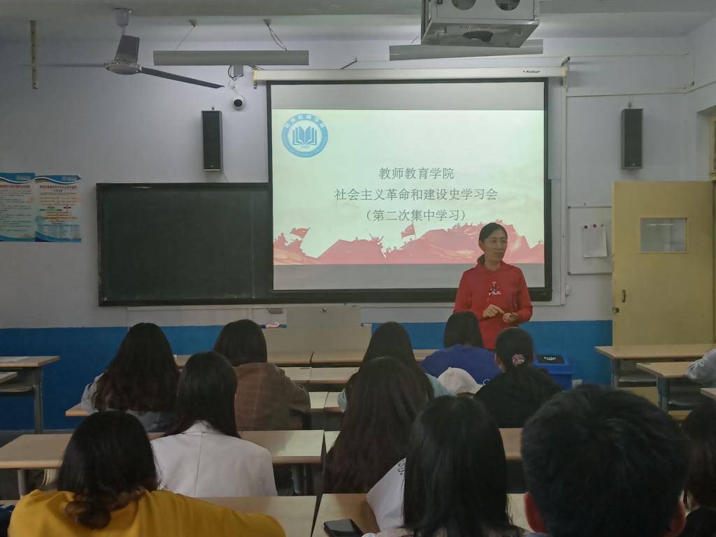 为增强学生更加深刻地感悟习近平新时代中国特色社会主义思想的真理力量和实践力量,切实增强“四个意识”、坚定“四个自信”、做到“两个维护”。太阳成集团tyc33455于5月5日在知行楼303教室举办关于“社会主义革命和建设史”第二次专题学习。