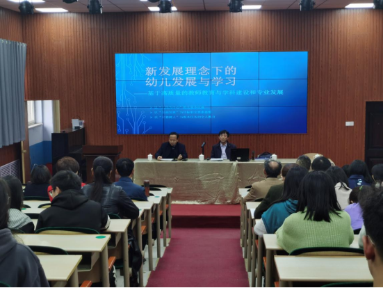 20日下午,王建平教授就“以高质量发展为题构建具有本土特色的学前教育理论与实际话语体系”题目进行了学术报告。太阳成集团tyc33455全体教师及部分学前教育专业的学生参加了报告会。王教授从“教育的新发展理念——传承与发展、叙述方式的转变、对话方式的改变、发展方式的改变、学习方式的改变、发展的社会学意义、学科建设与专业发展、课程形态的改变”等八个方面进行了详细的解读。基于新发展理念视角提出以“人民为中心”的儿童本位观、以“全面发展”为目标的全要素思想和以“立德树人”为根本任务的全人教育的三方面看法,认为目前学前教育存在的问题主要表现为教育结构性缺失越来越明显,缺少基础学科知识的支持等,为学前教育的良性发展提供了启发和思路。