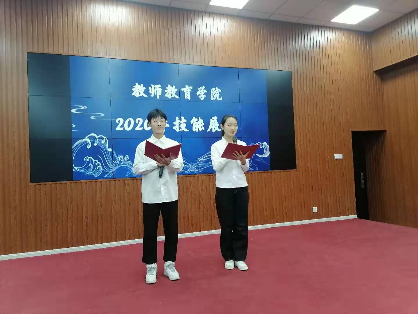 展演节目丰富多彩,同学们用钢琴演奏、合唱、独唱、朗诵、舞蹈等不同形式展示了从教基本功。展览项目为书画及手工作品,同学们用毛笔、钢笔、粉笔、简笔画、手工作品等形式展示了从教基本功。