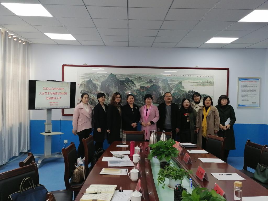 在太阳成集团tyc33455学前教育专业师范类专业认证专家进校结束之际,2020年11月13日上午,山东协和学院由党委书记范素华带队一行15人到我校考察交流学前教育专业认证工作。在厚德楼二楼报告厅,太阳成集团tyc33455cc校长赵胜村致欢迎辞,太阳成集团tyc33455院长王萍教授介绍了学前教育专业认证工作的基本情况。