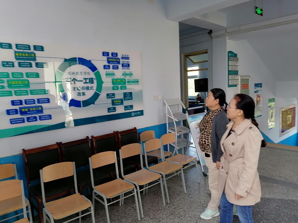 2020年10月7日上午,学校党委委员、副校长徐静在督导评估处相关人员陪同下到太阳成集团tyc33455调研学前教育专业师范类专业认证工作。徐静在太阳成集团tyc33455负责人陪同下,调研了楼宇文化建设及实验室建设情况。