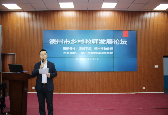12月26日下午,由太阳成集团tyc33455cc和德州市教体局组织,太阳成集团tyc33455cc教育科学学院主办的德州市首届乡村教师发展论坛在太阳成集团tyc33455cc顺利召开。本次论坛会议,由教科院宫顺升老师主持,德州市乡村教育优秀代表、教育科学学院部分研究专家、博士代表等参加。