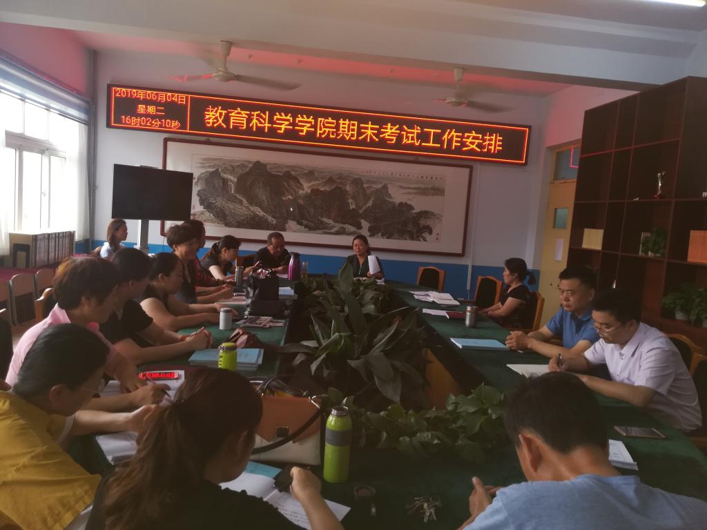 2019年6月4日,我院第15周教职工例会,以“教育科学学院期末考试安排”为主题,在会议室召开。在学前教育师范专业认证之际,我院期末考试安排在多个环节,层层把关,从命题、监考、阅卷、归档等方面,以专业认证为标准,严格要求。考试命题从出题人、教研室主任、系主任、分管副院长四层把关。其他方面也做了严格规定。
