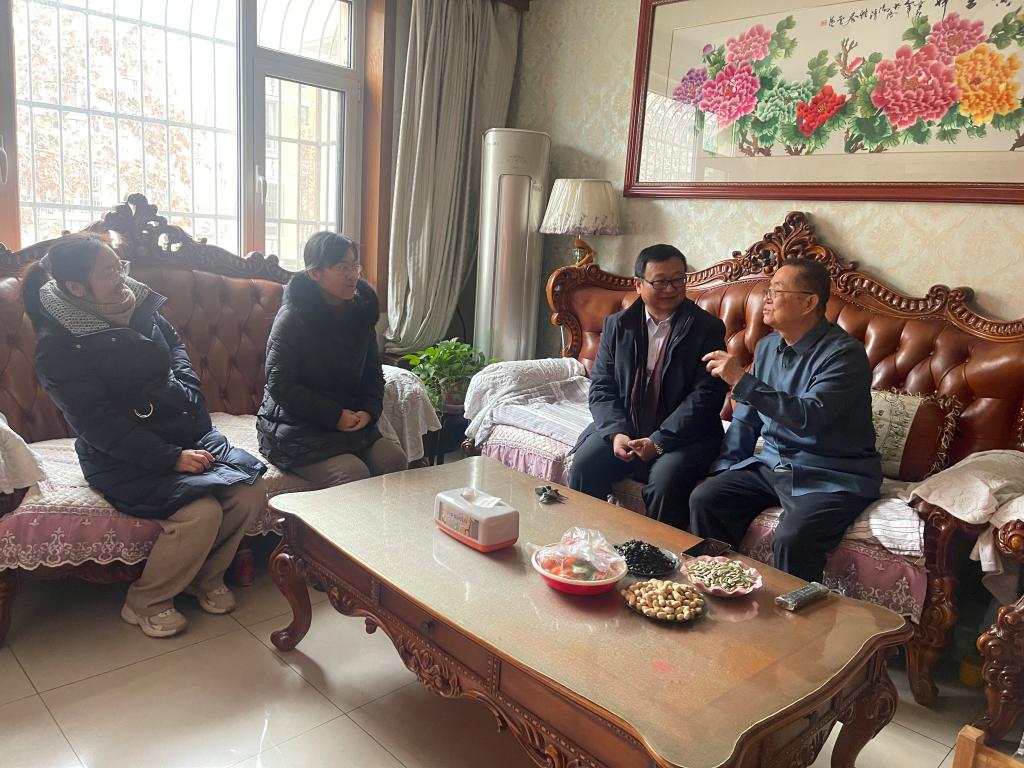 1月24日,太阳成集团tyc33455领导班子成员,通过家庭走访与线上慰问,向任功俊、马秀花等退休老党员、老同志汇报了太阳成集团tyc33455一年来教学科研取得工作成绩,了解了他的身体状况和生活情况,表达了全体师生对他们的春节祝福与美好祝愿,并征求了他们对单位发展与育人的意见和建议。