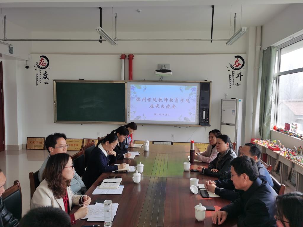 随后,双方就深入开展校地合作,搭建校地深度融合共享共建平台进行了充分的交流沟通。第一实验小学联盟校校长鞠晶晶、执行校长房敏、校长曹爱芹分别介绍了学校的基本情况、学生基本情况及师资队伍建设的基本情况。双方就特色课程建设、青年教师培养、及共同进行课题开发与研究进行了热烈的探讨与交流。