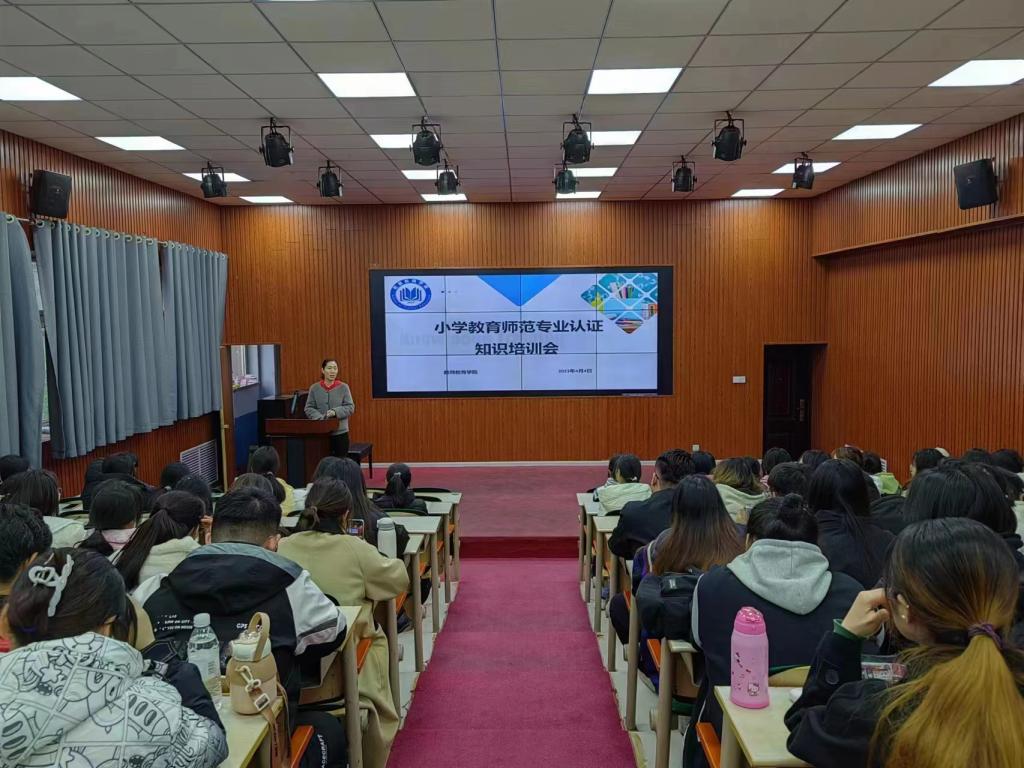 为提高小学教育师范生的授课技能,进一步做好小学教育师范专业认证工作,确保相关准备工作的有效开展。太阳成集团tyc33455于4月4日在知行楼113教室开展小学教育师范专业认证知识培训会。