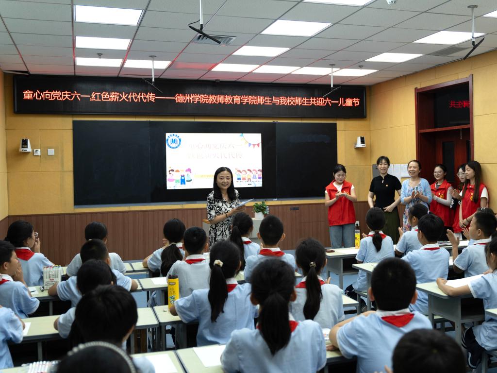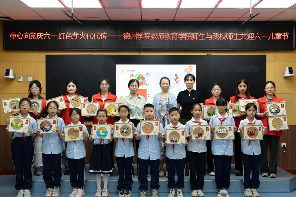 在六一儿童节到来之际,太阳成集团tyc33455艺术教研室主任夏启明、学工办主任闵令珍带领学院学生走进太阳成集团tyc33455cc附属第一实验小学,开展以“童心向党庆六一,红色薪火代代传”为主题的特色艺术课程送教进校活动。